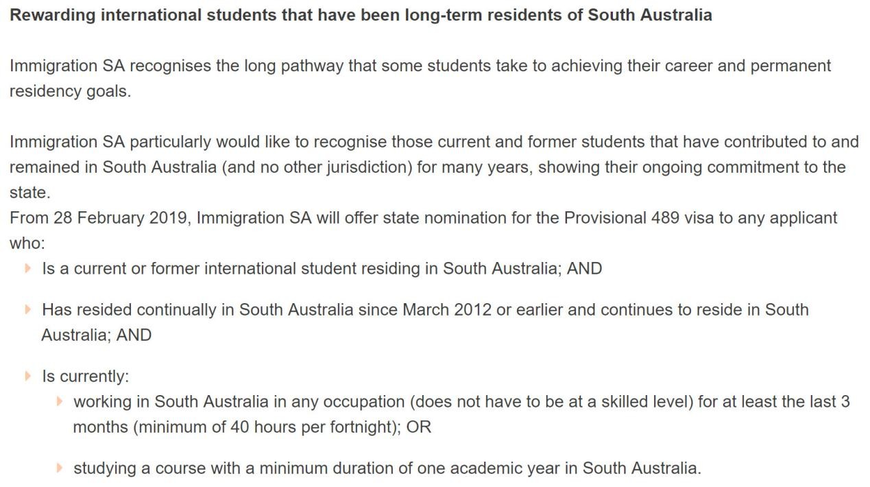 2019年2月28日起,南澳州移民局將向同時(shí)滿足以下三個(gè)條件的申請(qǐng)人提供489臨時(shí)簽證提名: