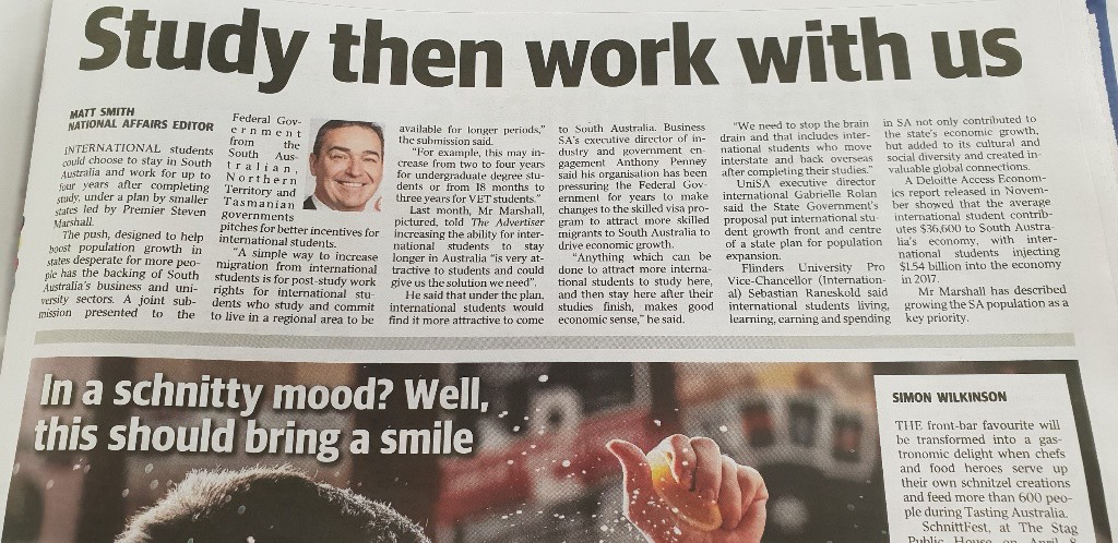 另外,南澳州州長(zhǎng)Steven Marshall的一項(xiàng)計(jì)劃,或?qū)⒀娱L(zhǎng)國(guó)際學(xué)生畢業(yè)后工作臨時(shí)簽證的有效時(shí)長(zhǎng),比如,將本科國(guó)際畢業(yè)生工作臨時(shí)簽證的有效時(shí)長(zhǎng)從2年延長(zhǎng)至4年,VET國(guó)際畢業(yè)生工作臨時(shí)簽證的有效時(shí)長(zhǎng)從18個(gè)月延長(zhǎng)至3年。這項(xiàng)可以吸引更多人才來(lái)到南澳的計(jì)劃得到了當(dāng)?shù)毓ど滩块T和高校們的支持。