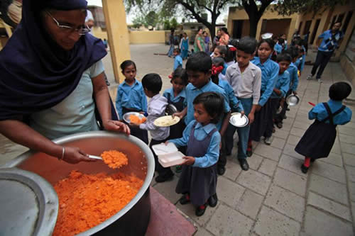 在印度,很多學校參與了免費午餐計劃,值得一提的是,印度學校里的孩子達數(shù)百萬,政府的擔子不輕。